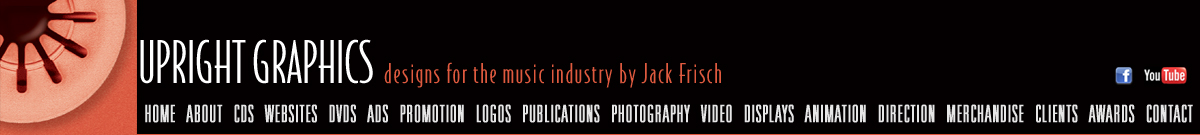 "Jack Frisch has completely re-invented the idea of graphic arts for the musician and has made what often used to be a nightmare and headache a source of pride and inspiration! From a photograph to a complete CD package or website, Jack Frisch has that rare ability to see right to the essence of the message you want to convey . So many times now I have tossed a simple idea at Jack and a few days later he has created something so beautiful that what was beyond my wildest idea of what is even possible. Jack Frisch is jazz on paper -- Jack swings, Jack grooves and Jack has your back." Jon Gold The following are examples of my Upright Graphics designs, writes copy and produces "camera ready" advertising for individuals and businesses that have appeared Internationally, in such magazines as Jazziz, DownBeat, JazzTimes, BassPlayer and Jazz Improv. I specialize in concept, design and production of all size ads in black and white or color with deadlines as short as 24 hours. Upright makes sure your ad is completed and delivered to the publication on time. Whether it is a single or multiple product ad or if you have concept or not, send me a E-mail or call. E-mail or call if you have any questions regarding advertising designs or prices. If you need to meet a tight deadline you should give Upright a call right now. |